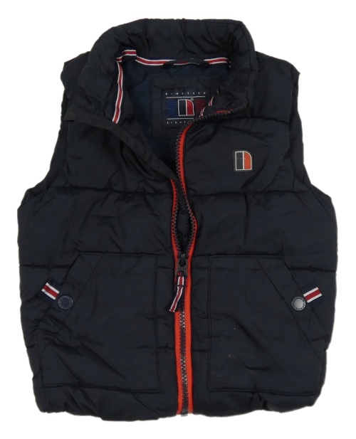 Tmavomodrá prošívaná šusťáková zateplená vesta s nášivkou Next