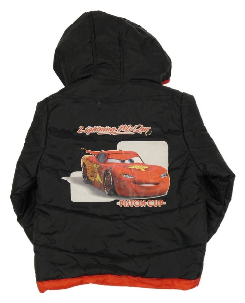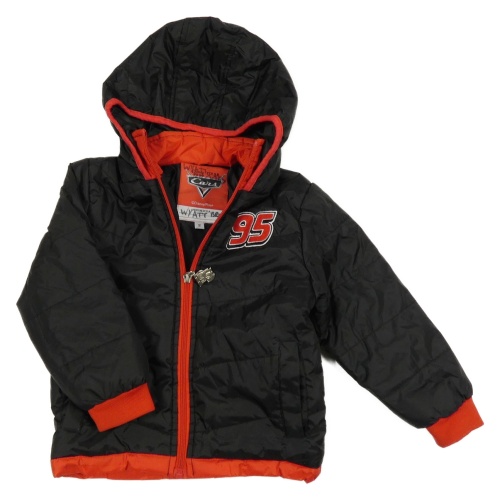 Černo-červená šusťáková zateplená bunda s Cars a kapucí