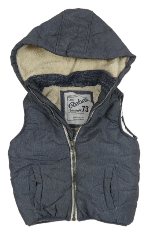 Tmavomodrá melírovaná šusťáková zateplená vesta s kapucí Rebel