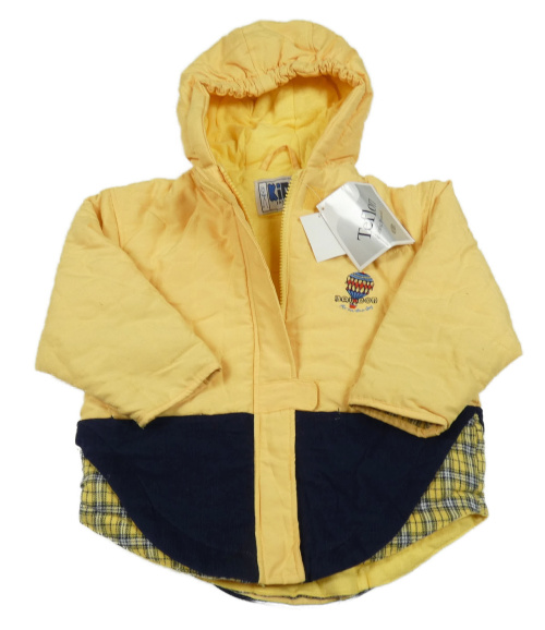 Nové - Žluto-tmavomodrá šusťáková zateplená bunda s kapucí Kids