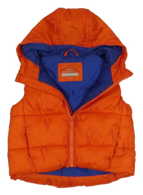 Červená šusťáková zateplená vesta s blesky a kapucí Primark