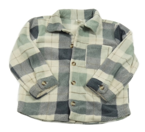 Béžovo-zeleno-šedá kostkovaná fleecová košilová bunda H&M