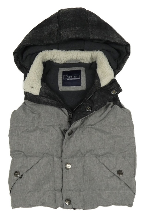 Šedo-černá melírovaná šusťáková zateplená vesta s kapucí Next