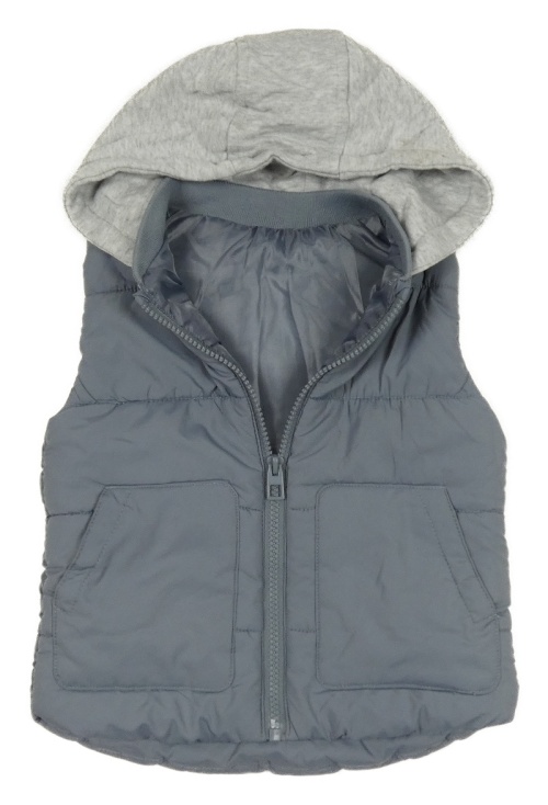 Šedá šusťáková zateplená vesta s kapucí