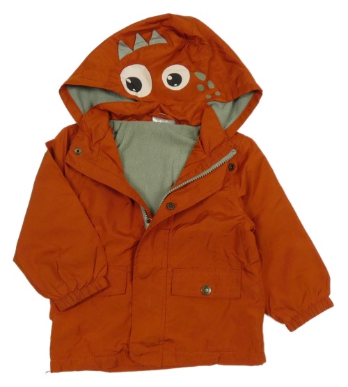 Cihlová šusťáková jarní bunda s kapucí s dinosaurem So Cute