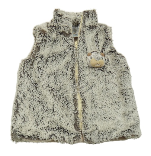 Béžovo-hnědá kožešinová podšitá vesta s medvídkem