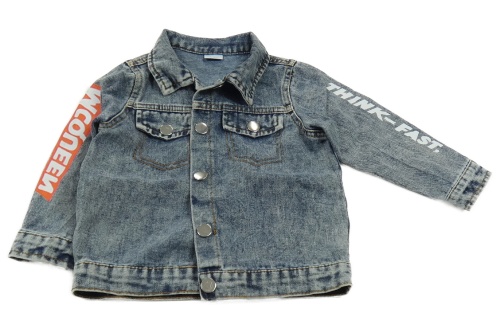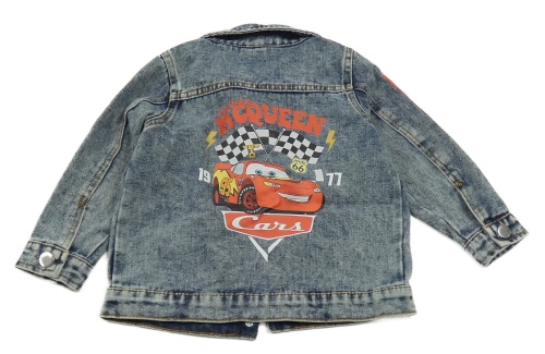 Šedomodrá riflová bunda s nápisy - Auta