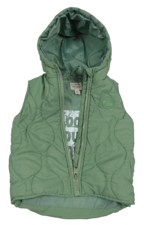 Khaki šusťáková prošívaná zateplená vesta s kapucí Threadcub