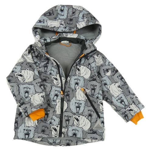Šedo-oranžová softshellová sportovní bunda s s medvědy a kapucí H&M