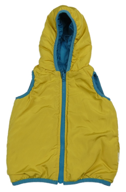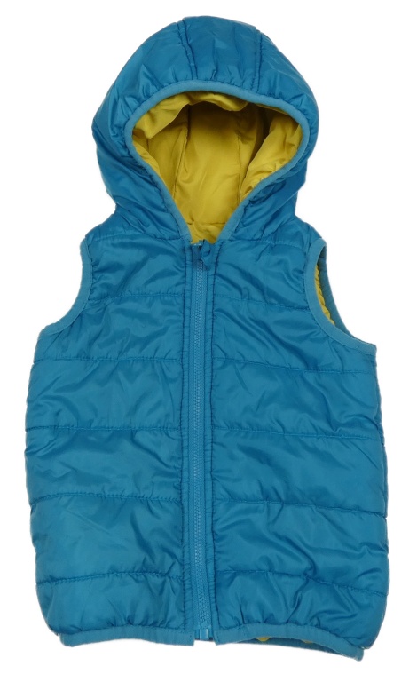 Modrozelená prošívaná šusťáková zateplená oboustranná vesta s kapucí in extenso