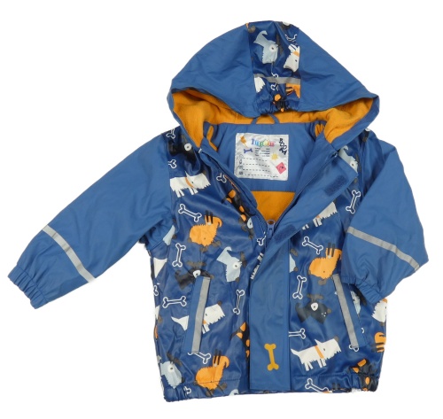 Modrá nepromokavá jarní bunda s pejsky a kapucí Lupilu