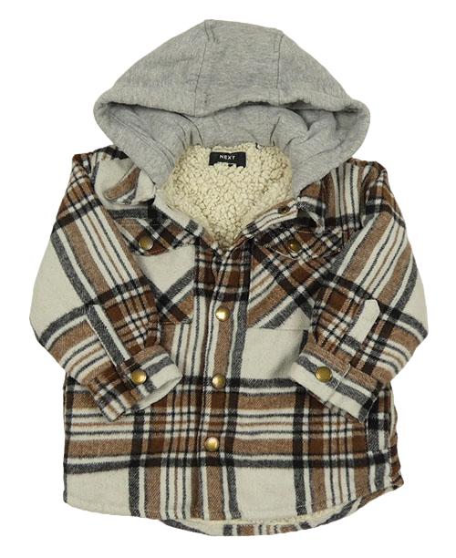 Béžovo-hnědo-černá kostkovaná zateplená košilová bunda s teplákovou kapucí Next