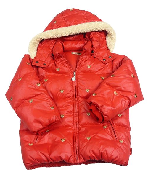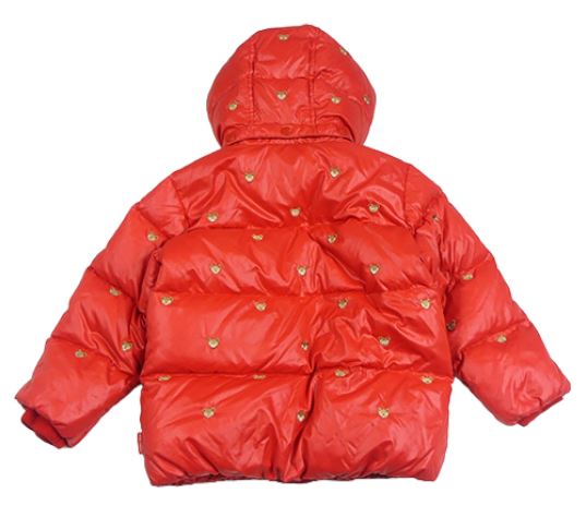 Červená šusťáková zimní bunda s medvědy a kapucí