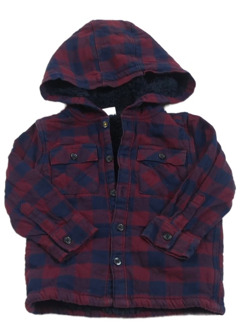 Modro-vínová kostkovaná zateplená košilová bunda s kapucí F&F