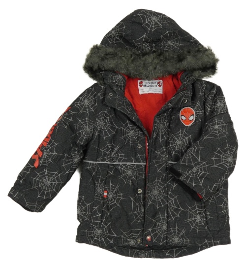 Tmavošedá šusťáková zimní bunda se Spider-manem a kapucí Marvel