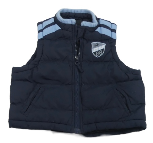 Tmavomodrá šusťáková zateplená vesta s nášivkou