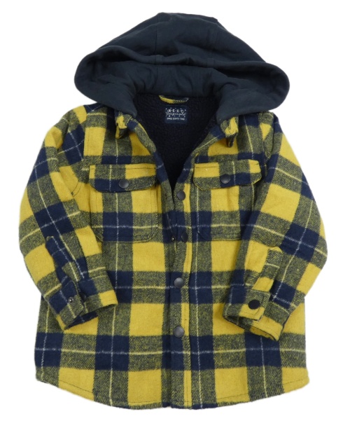 Žluto-tmavomodrá kostkovaná zateplená flaušová košilová bunda s kapucí Next