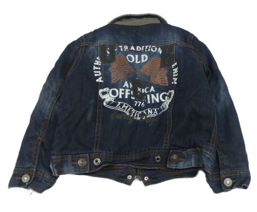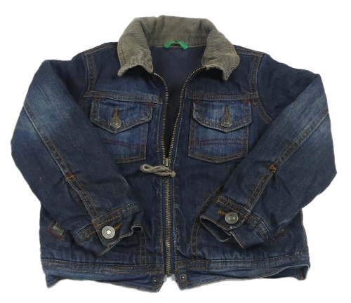 Tmavomodrá riflová zateplená bunda s praporky a nápisy Benetton
