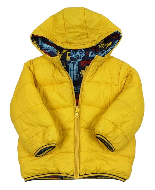 Žlutá šusťáková zimní oboustranná bunda s kapucí F&F