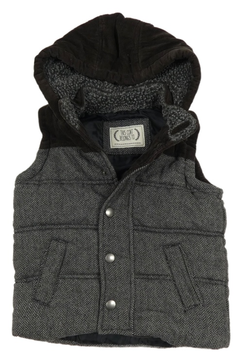 Černo-šedo-hnědá vzorovaná vlněno/manšestrová zateplená vesta s kapucí M&S