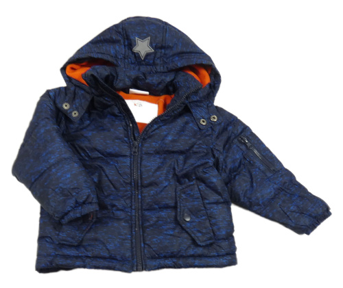 Tmavomodrá melírovaná šusťáková prošívaná zimní bunda s kapucí Infinity