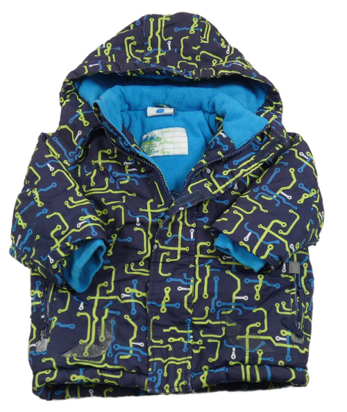 Tmavomodro-zelená vzorovaná šusťáková zimní bunda s kapucí Topolino
