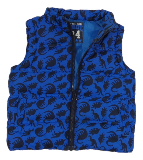 Cobaltově modrá prošívaná šusťáková zateplená vesta s dinosaury Rebel