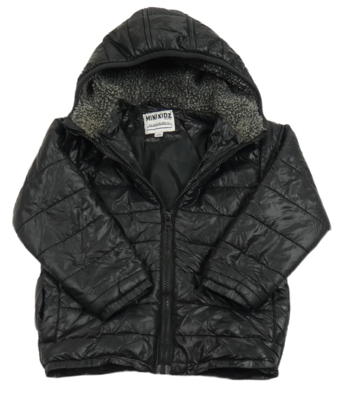 Černá šusťáková prošívaná zateplená bunda s kapucí Minikidz