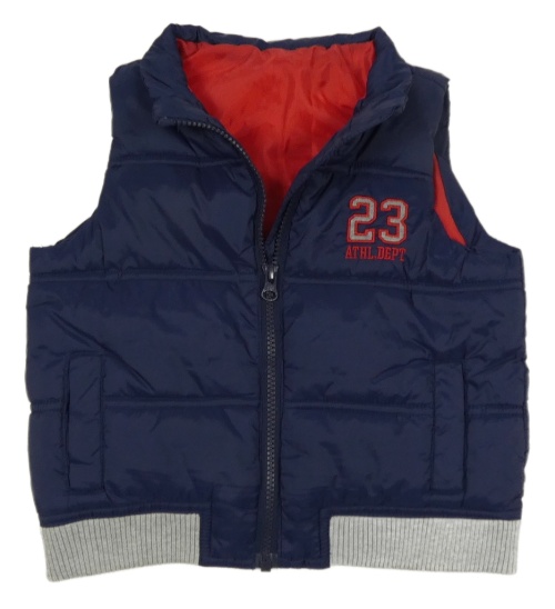 Tmavomodrá šusťáková zateplená vesta s číslem Rebel