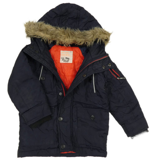 Tmavomodrá šusťáková zimní bunda s kapucí s kapucí s kožešinou Next