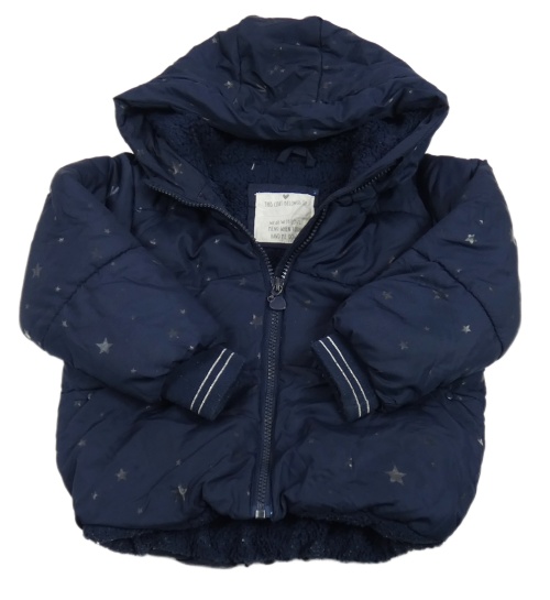 Tmavomodrá šusťáková zimní bunda s hvězdami a kapucí Matalan