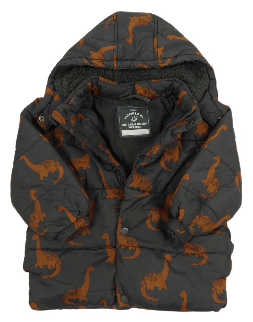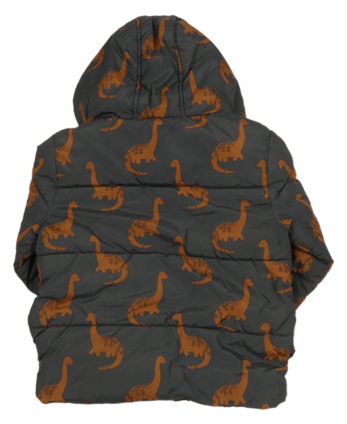 Tmavošedá šusťáková prošívaná zimní bunda s dinosaury a kapucí George