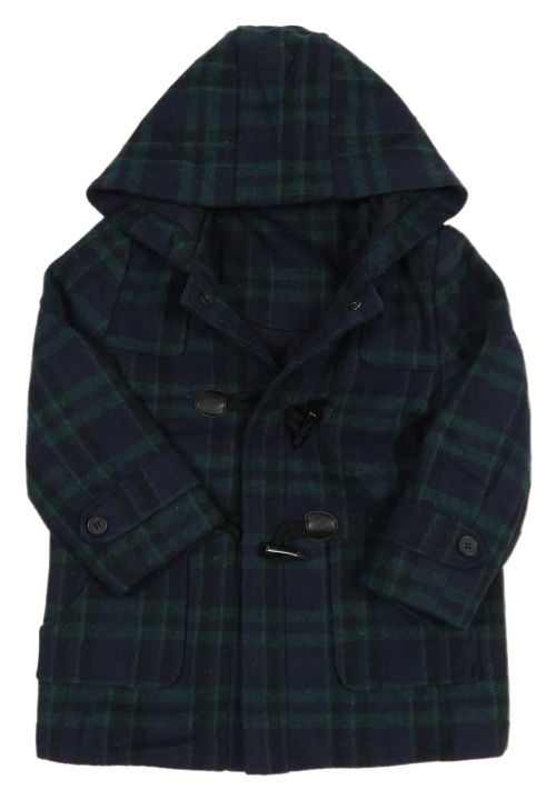 Tmavomodro-zelený kostkovaný flaušový zateplený kabát s kapucí Tu