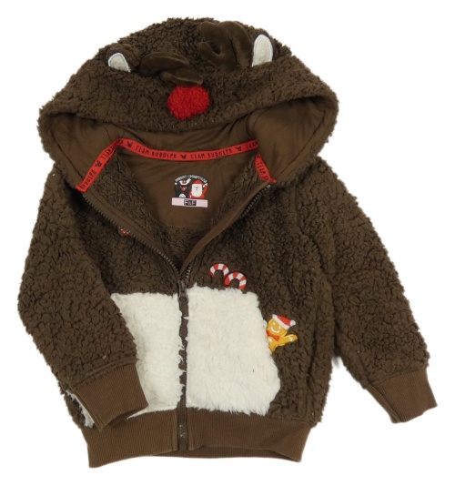 Hnědo-bílá huňatá propínací mikina s obrázky a ž kapucí - sob F&F
