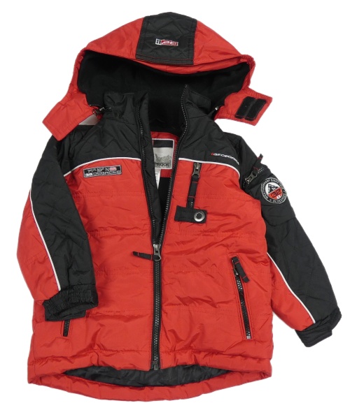 Červeno-černá šusťáková funkční zimní bunda s výšivkou a kapucí 32Degrees