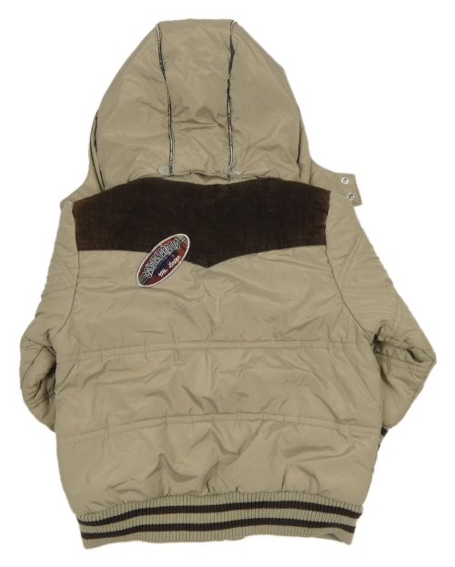 Béžovo-hnědá šusťáková zateplená bunda s nášivkami a kapucí