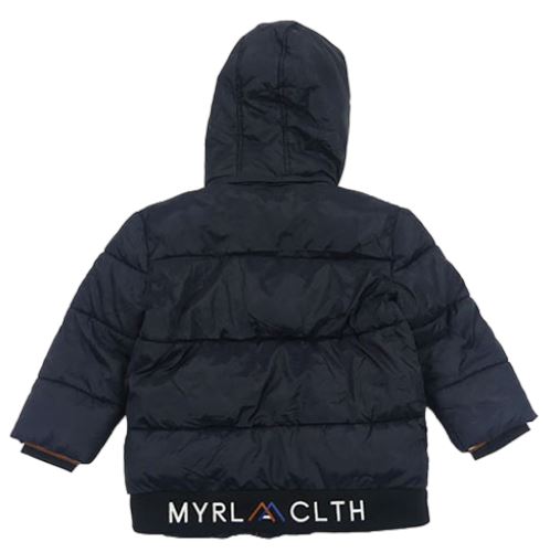 Tmavomodrá army šusťáková zimní bunda s nápisem a odepínací kapucí s kožešinou Mayoral