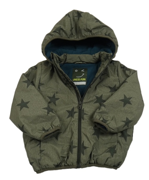 Khaki šusťáková zateplená bunda s hvězdami a kapucí Next