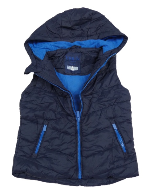 Tmavomodrá prošívaná šusťáková zateplená vesta s kapucí URBAN RASCALS
