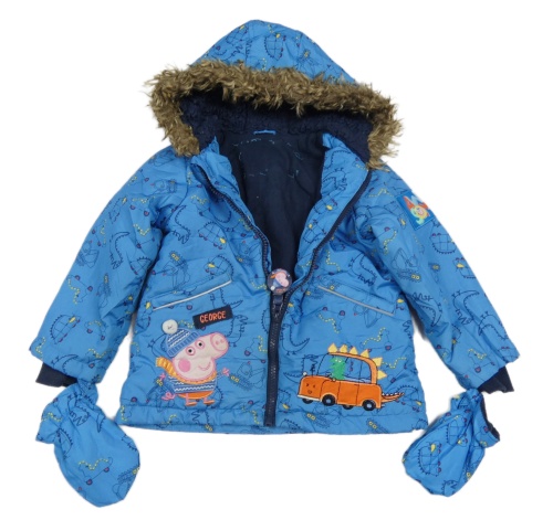 Modrá šusťáková zimní bunda s Tomíkem a kapucí + rukavice Nutmeg