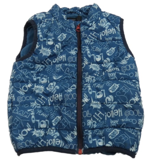 Tmavomodrá šusťáková prošívaná zateplená vesta s nápisy Name it