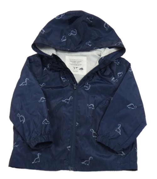 Tmavomodrá šusťáková jarní bunda s dinosaury a kapucí PRIMARK