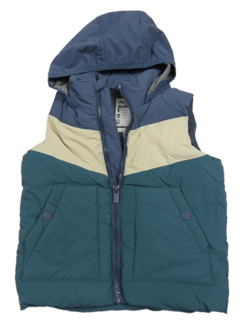 Petrolejovo-tmavomodro-béžová šusťáková zateplená vesta s kapucí Vertbaudet