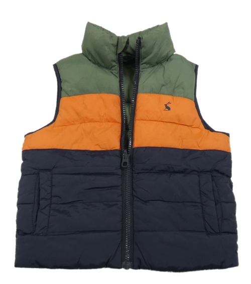 Tmavomodro-khaki-oranžová šusťáková zateplená vesta Joules