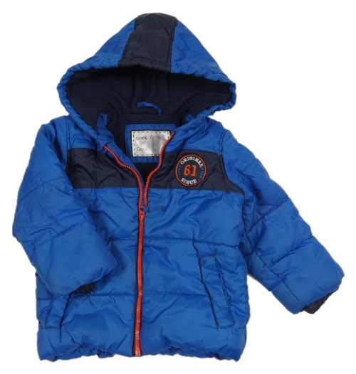 Modro-tmavomodrá šusťáková zimní bunda s nášivkou a kapucí Mothercare