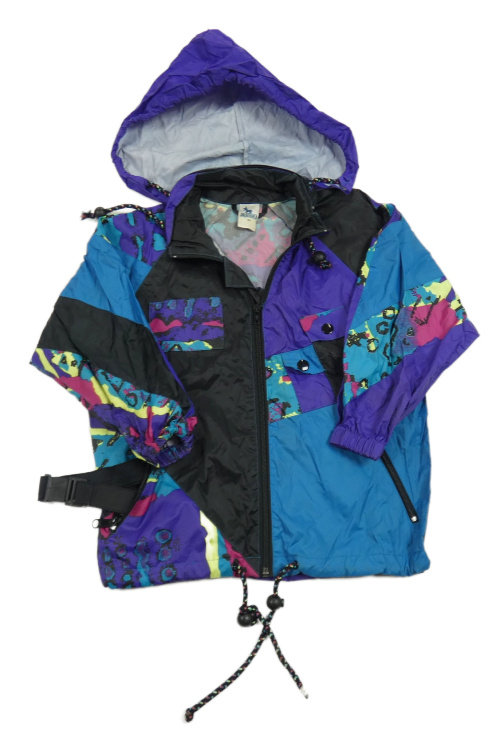 Fialovo-černo-barevná šusťáková bunda s kapucí