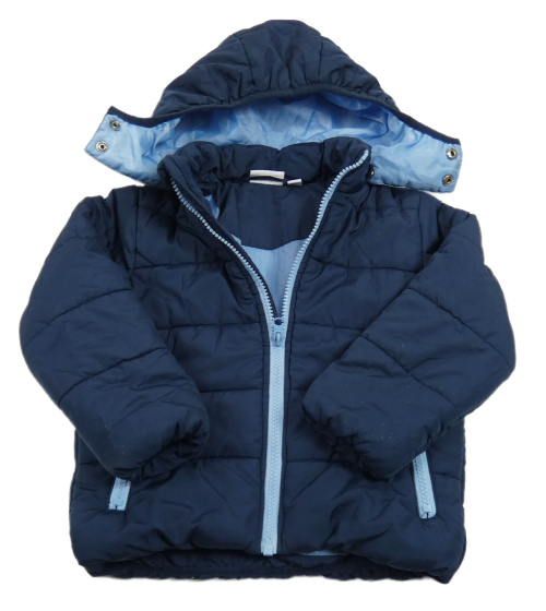 Tmavomodrá šusťáková prošívaná zateplená bunda s kapucí kids
