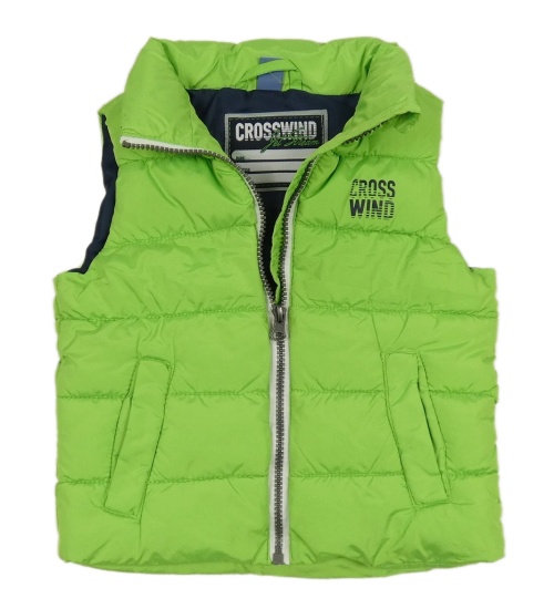 Zelená šusťáková zateplená vesta s nápisem Dopodopo