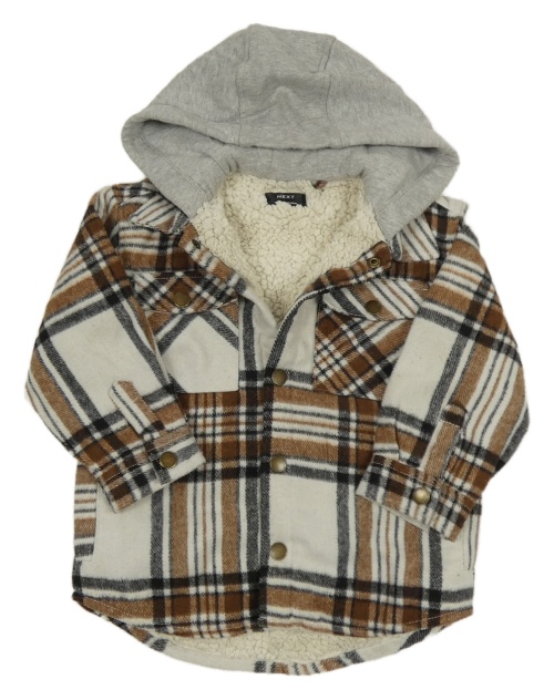 Hnědo-bílo-černá kostkovaná košilová zateplená bunda s kapucí Next