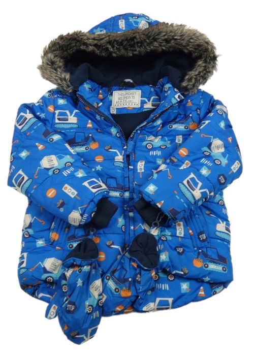 Modrá šusťáková zateplená bunda s bagry a kapucí + rukavice George
